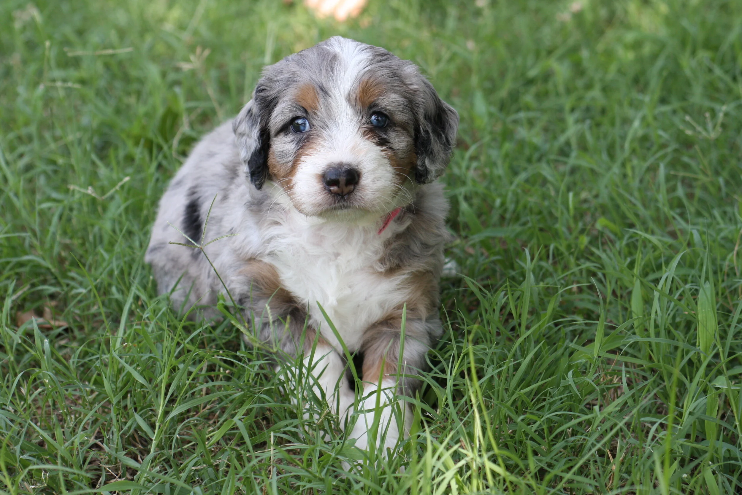 Mini Merle Bernedoodle and Bernese Mountain Dog